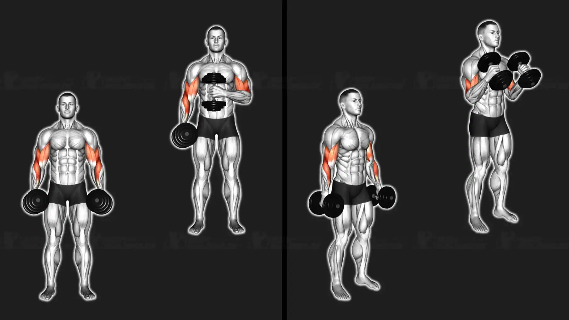 Muskelgruppen: Primär arbeiten Bizeps, Brachialis und Brachioradialis; unterstützend stabilisieren Unterarme, Griffkraft und Schultern die Bewegung.