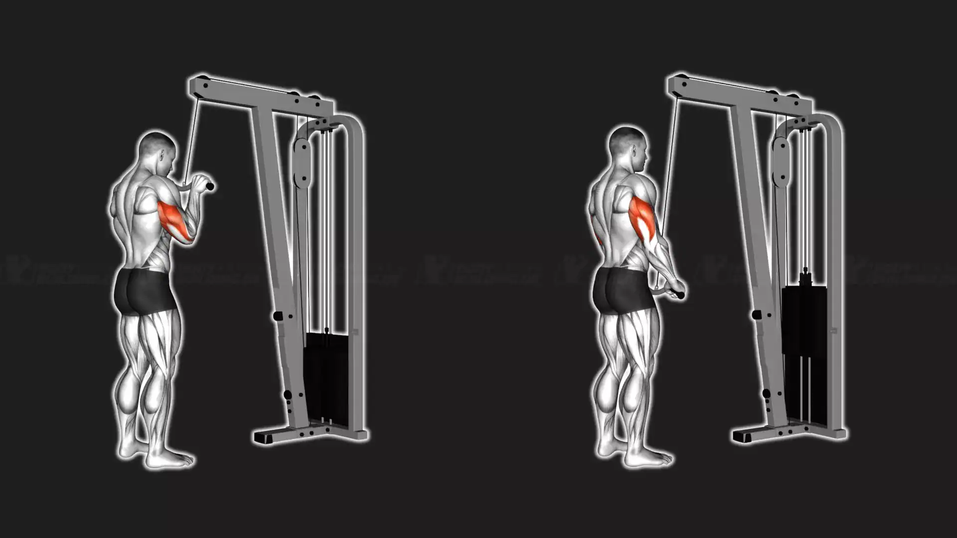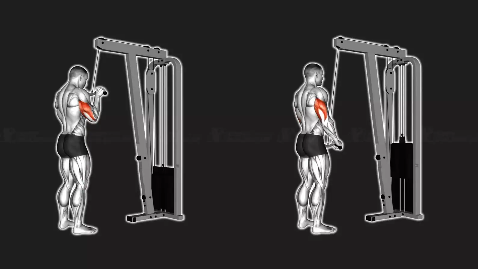 Ziel: Trizeps Pushdowns trainieren primär den Trizeps und Knorrenmuskel – unterstützt von Handstrecker.
