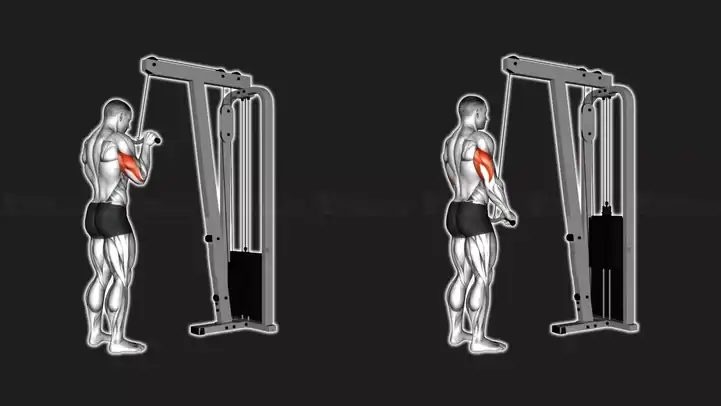 Vor allem die Muskulatur deiner Oberarme steht bei dieser Übung im Mittelpunkt. Im Fokus steht der Trizeps als Hauptstrecker im Ellenbogengelenk, unterstützt vom Knorrenmuskel sowie der Unterarmmuskulatur. Durch den konstanten Widerstand beim Trizepsdrücken am Kabelzug bleibt der Muskel über den gesamten Bewegungsradius unter Spannung.